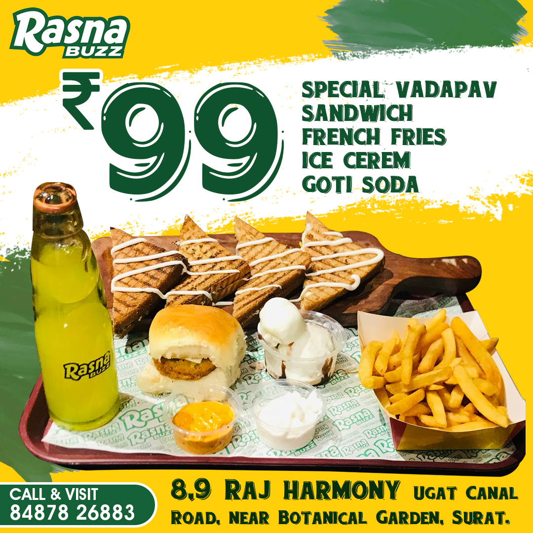 Rasna Buzz Adajan offers a diverse menu that caters to every palate. From crispy French fries to rich garlic bread, each dish is crafted with care, ensuring both quality and satisfaction. Customers have lauded the enticing combo offers, blending taste with value.